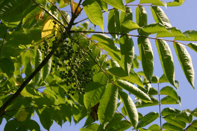 見学した漆器ショップでは、実物の漆の木と掻く道具を展示していました。 |